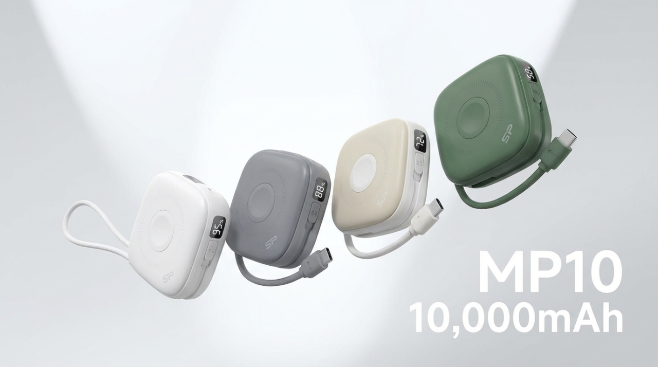 스마트폰, 이어버드, 애플워치까지 한 번에 충전 가능한 올인원 솔루션대만 타이베이 – 2025년 12월 1일글로벌 메모리 스토리지 및 주변기기 전문 기업 실리콘파워(Silicon Power, 이하 SP)가 스마트폰, 이어버드, 애플워치 등 다양한 기기를 손쉽게 충전할 수 있도록 설계된 컴팩트한 10,000mAh 마그네틱 무선 보조배터리 MP10을 새롭게 출시했다.이번 신제품은 20W PD 고속 충전 지원, 듀얼 USB-C 내장 케이블 탑재, 그리고 선명한 디지털 디스플레이를 갖추어 여행이나 일상생활에서 강력한 편의성을 제공하는 것이 특징이다.강력한 마그네틱 고속 충전MP10은 10N의 강력한 자력을 갖춘 15W 마그네틱 무선 충전 기능을 탑재하여, 사용자가 호환되는 스마트폰 뒷면에 안전하게 부착하거나 기기를 올려두기만 하면 즉시 빠른 무선 충전이 가능하다. 특히 아이폰 16 Pro 모델 기준으로 약 30분 만에 배터리를 50%까지 충전할 수 있으며[1], 완충 시 대략 2회 분량의 충전을 지원해 하루 종일 배터리 걱정 없이 사용할 수 있다. 무게는 약 0.21kg(0.47lb)에 불과하여 매일 휴대하기에 부담 없는 가벼움을 자랑한다.내장 케이블로 완성된 멀티 디바이스 편의성MP10의 가장 큰 장점 중 하나는 별도의 케이블을 챙길 필요가 없다는 점이다. 2개의 USB-C 케이블이 본체에 내장되어 있어 즉시 충전(Plug-and-Go)이 가능하다. 또한, 입출력이 가능한 USB-C 포트와 무선 충전 패드를 함께 활용하면 여러 대의 기기를 동시에 충전할 수 있어 효율성이 극대화된다.제품 전면에는 밝은 LED 디지털 디스플레이가 장착되어 배터리 잔량과 충전 상태를 실시간으로 직관적으로 확인할 수 있다. MP10은 퓨어 화이트(Pure White), 스톤 그레이(Stone Gray), 샌드 베이지(Sand Beige), 포레스트 그린(Forest Green) 등 4가지의 세련된 색상으로 출시되어 소비자 선택의 폭을 넓혔다.주요 특징 요약용량 및 속도: 10,000mAh 대용량 배터리와 20W PD 고속 충전 지원올인원 무선 충전: 스마트폰, 이어버드, 애플워치를 위한 15W 마그네틱 무선 충전고속 충전 성능: 아이폰 16 Pro 기준 약 30분 만에 50% 충전 가능1케이블 일체형: 2개의 내장 USB-C 케이블 탑재 (1개는 입출력 겸용, 1개는 출력 전용)확장성: 추가 USB-C 입출력 포트 제공디스플레이: 직관적인 LED 디지털 배터리 및 충전 상태 표시창디자인: 컴팩트하고 여행 친화적인 디자인과 스타일리시한 컬러 옵션[1] 해당 결과는 실리콘파워 내부 연구소 데이터를 기반으로 하며, 실제 결과는 사용 환경, 패턴 및 기타 요인에 따라 달라질 수 있습니다.